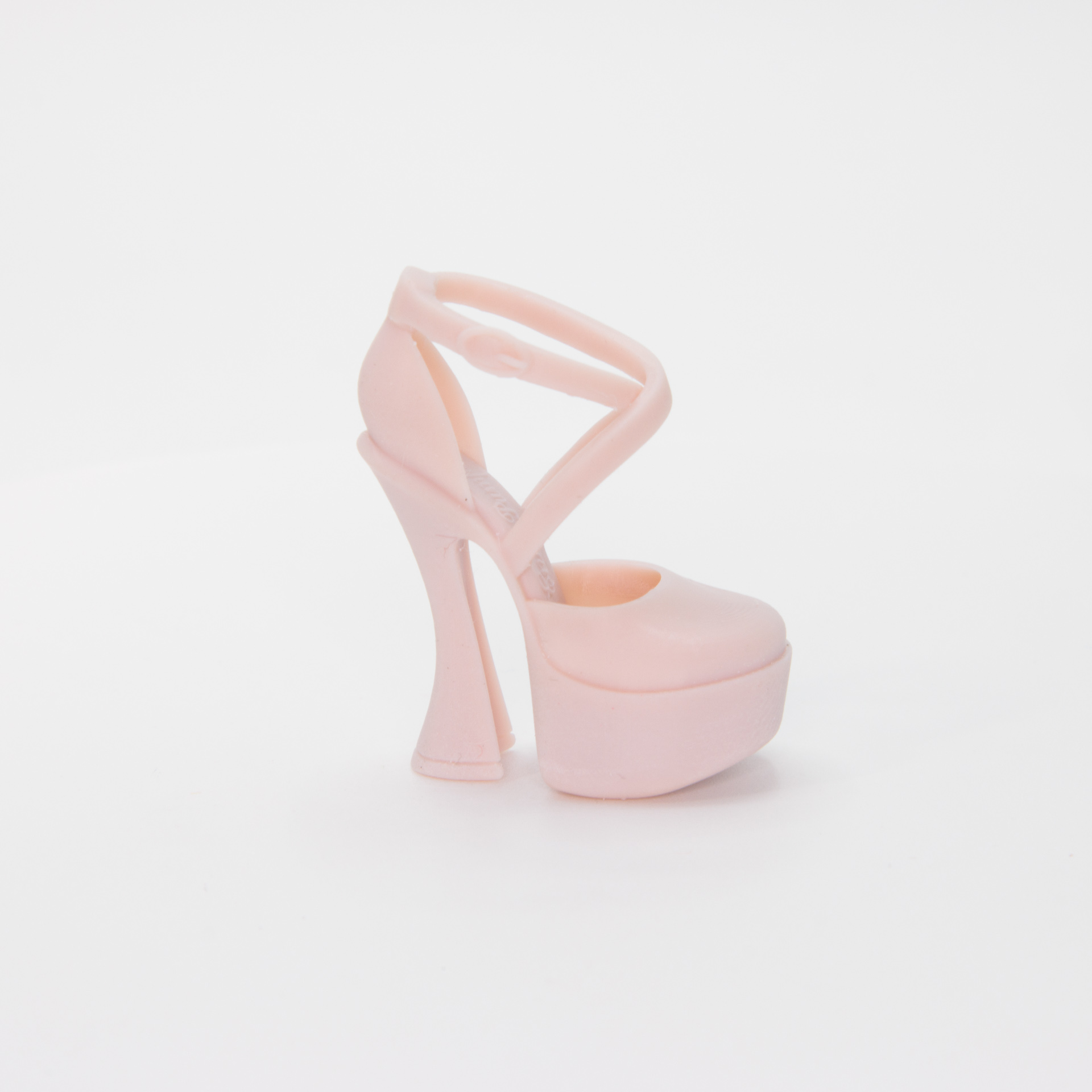 Vespera is a couture platform heel defined by a bold silhouette, sculptural flared heel, and elegant ankle strap. Designed for dramatic evening looks and high-fashion styling, this statement shoe brings runway presence to collector dolls.